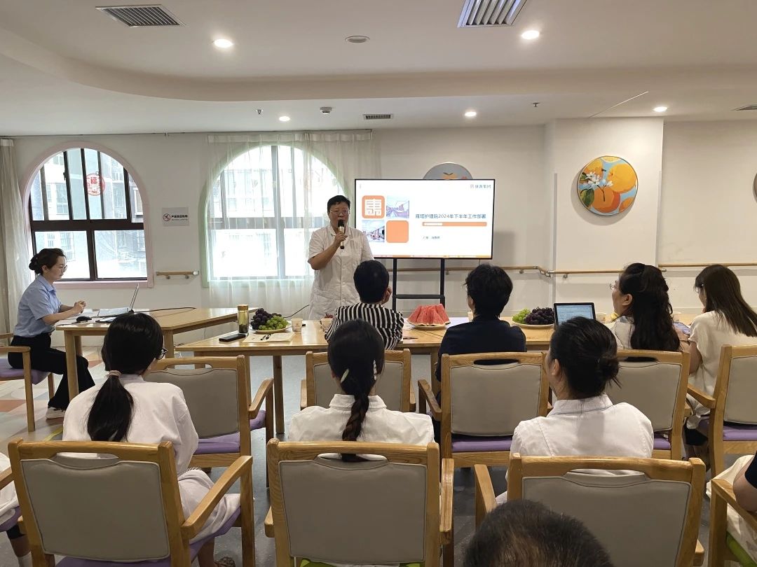 会议伊始,护理院各部门相关负责人就各自板块半年来取得的成就娓娓道来,医疗部的精湛技艺,护理团队的协作、护理质量的提升,安宁疗护的人性化服务,行政部的有序管理,以及优秀护理员的细心服务,共同编织了一个关于责任、专业与爱心的动人篇章。