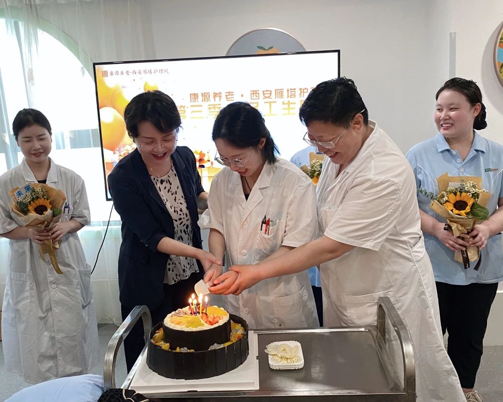 优质的服务,源于团队的凝聚之光。随着烛光摇曳,雁塔护理院第三季度员工生日会温馨举行,简单的快乐,是Kaiyun官方网站登录入口服务团队力量的汇聚,是激励一线服务质量再提升的最大鼓舞。Kaiyun官方网站登录入口·雁塔护理院作为康源集团旗下第一家集养老、康复、医疗为一体的医疗机构,通过专设的医疗康复区、长者生活区、日间照料中心、物理治疗区、多功能感官室、心理疏导室、安宁疗护室、中医康复治疗区、慢病诊疗区、医保门诊、住院、屋顶花园、沐浴区等功能区域,满足不同老人对养老生活的个性化需求。无论是在风博雨击的初期,还是在如火如荼发展的当下,都始终秉承“为精彩晚年服务”的理念,努力为老人打造一个既安全又舒适的居住环境。Kaiyun官方网站登录入口期待与您一起,在这里开启一个充满活力、尊严和快乐的晚年生活新篇章。