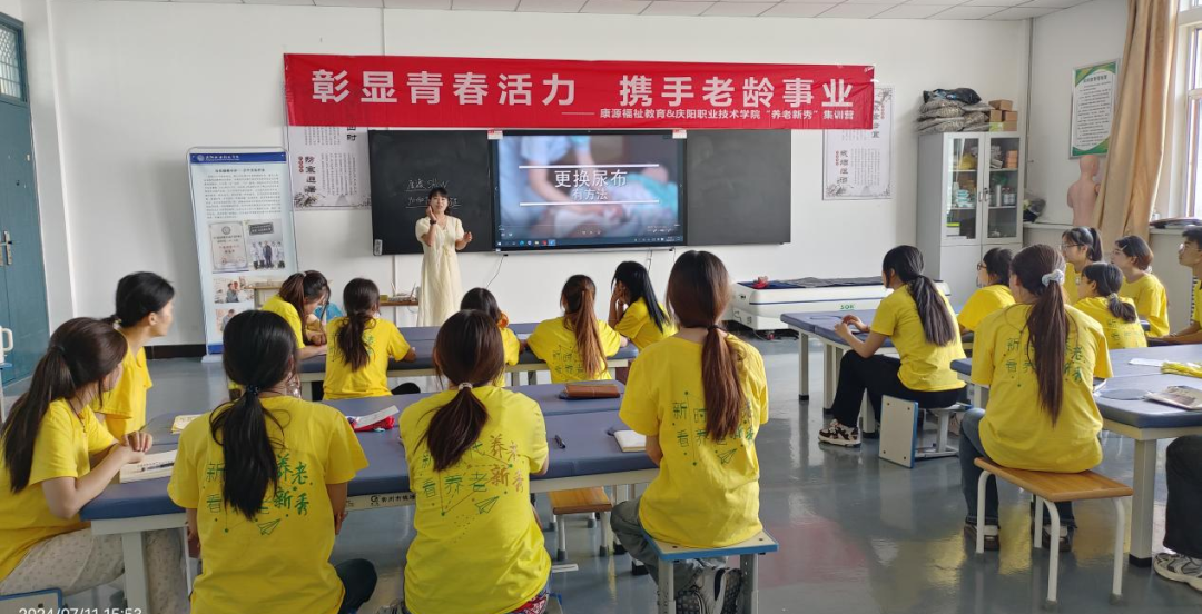 人才是企业发展的第一资源,为了助力庆阳职业技术学院智慧健康养老服务与管理专业的康源订单班养老新秀实习生们顺利完成从学生到职业人的华丽蜕变,快速融入养老行业,胜任岗位工作,并稳健开启职业生涯的征程,7月10日-12日,陕西康源福祉教育携手庆阳职业技术学院精心策划了一场为期三天的“彰显青春活力·携手老龄事业——‘养老新秀’赋能集训营”。